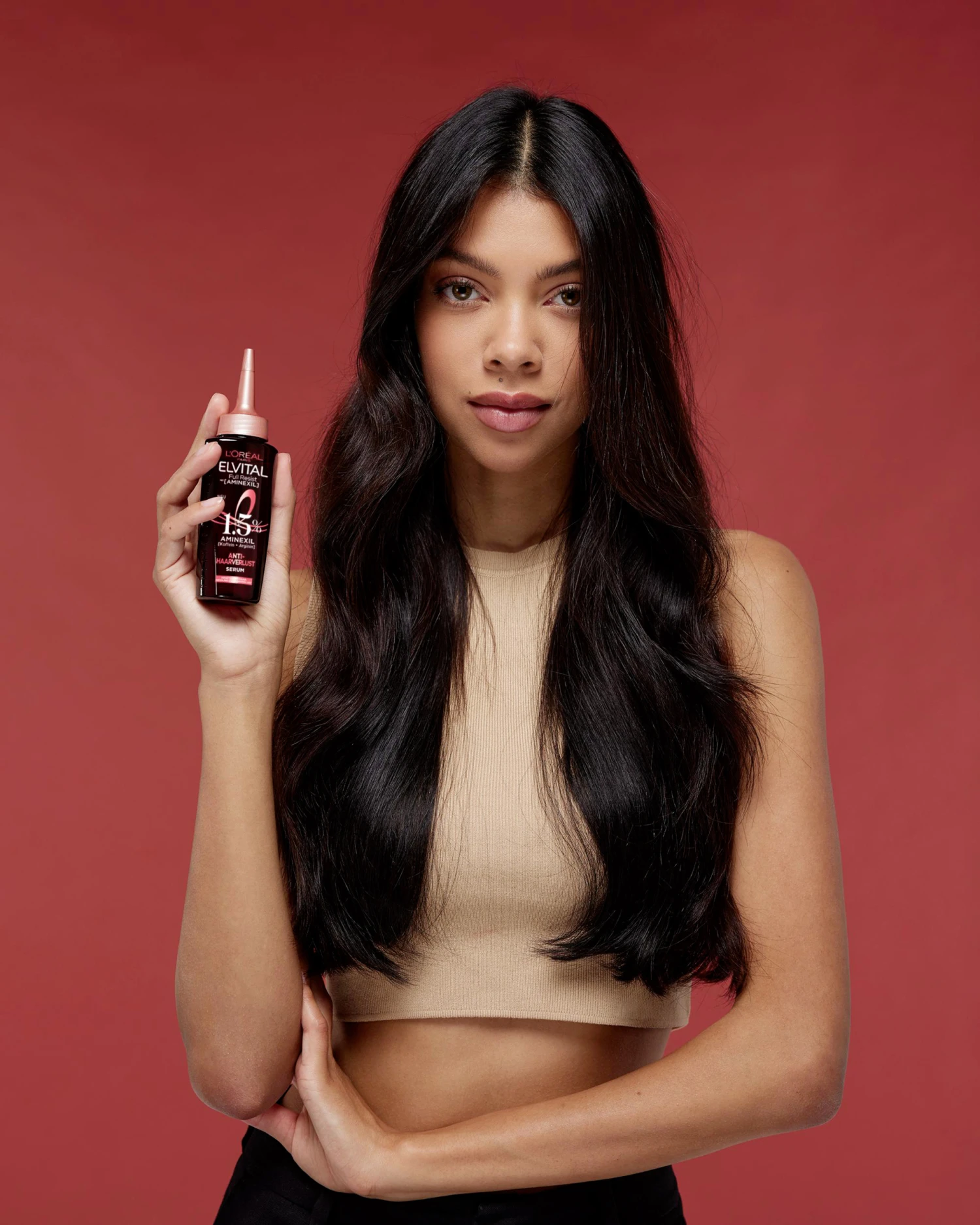 Das Elvital Full Resist Anti-Haarverlust Serum von L’Oréal Paris ist ein Haarserum für kraftloses Haar, mit der Neigung zu Haarverlust. Dank seiner reichhaltigen Formel stärkt das Serum das Haar direkt an der Haarwurzel und reduziert so, durch eine wissenschaftliche Studie bewiesen, den Haarausfall bei Frauen. Angereichert mit 1,5 % Aminexil unterstützt das Serum gegen Haarverlust von L’Oréal Paris zudem das natürliche Wachstum der Haare. Für mehr Fülle und gesünder aussehendes Haar.