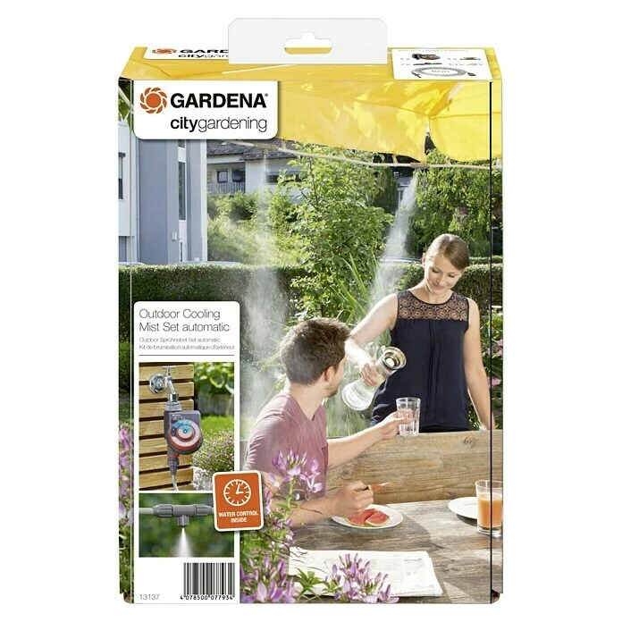 Das City gardening Outdoor Sprühnebel Set automatic von Gardena bringt an heißen Tagen Abkühlung im Freien. Über die Nebeldüsen wird feiner Wassernebel ausgebracht, der die Temperatur um bis zu 6 Grad Celsius abkühlen kann. Das city gardening Sprühnebel Set kann einfach auf Balkonen, Terrassen, unter Sonnenschirmen oder in Zelten montiert werden. Es wird mit einem integrierten OGS-Schlauchverbinder an den Wasserhahn angeschlossen. Mit der Easyplus Bewässerungssteuerung können Dauer und Frequenz des Sprühnebels eingestellt werden.