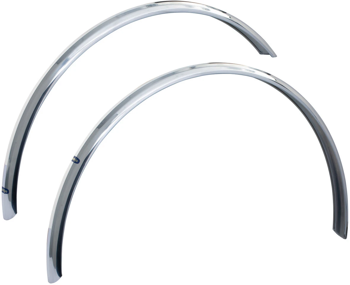 Das H31 Schutzblech Set von Honjo gehört zu den legendären auf Hochglanz polierten Klassikern aus Japan. Die Schutzbleche decken eine Reifenbreite von bis zu 35 mm ab. Mit dem besonders weit umfassenden Profil wird Spritzwasser einwandfrei im Blech gefangen gehalten. Das heißt, auch Füße und Kurbel bleiben trocken. Zudem verfügen die handgearbeiteten Schutzbleche von Honjo über eine edle Optik, ein geringes Gewicht und eine ausgesprochen lange Haltbarkeit. Das H31 gibt es auch als „hammered“ Version, bei Fans von klassischen Rädern eine besonders beliebte Optik.