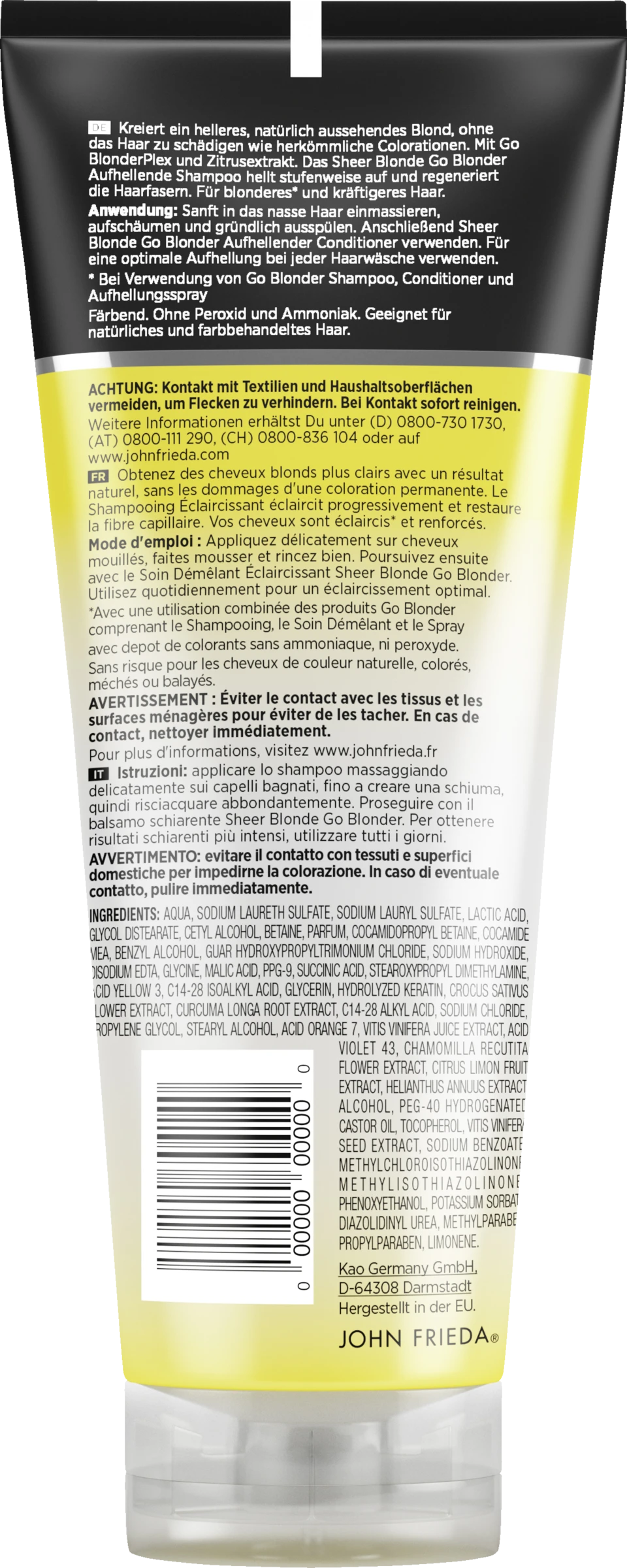 Sanft ins nasse Haar einmassieren, aufschäumen und gründlich ausspülen. Für eine optimale Aufhellung täglich anwenden.