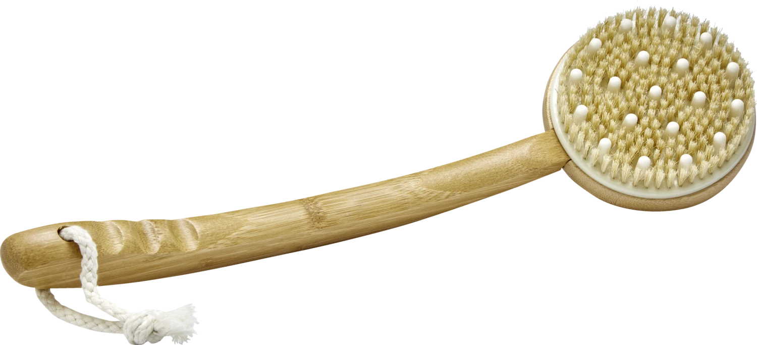 Durch den gebogenen Griff ein ideales Hilfsmittel um schwer erreichbare Körperpartien zu erreichen. Die Massagebürste entfernt alte Hautschuppen, fördert die Durchblutung und lockert das Muskelgewebe.