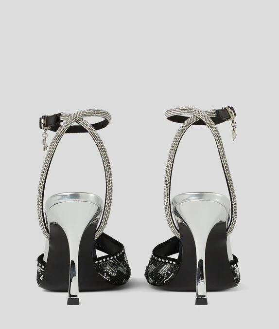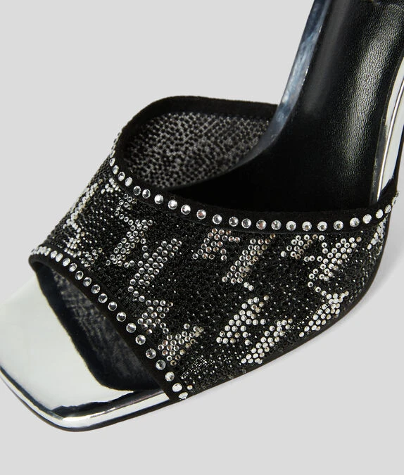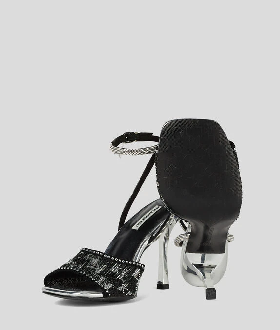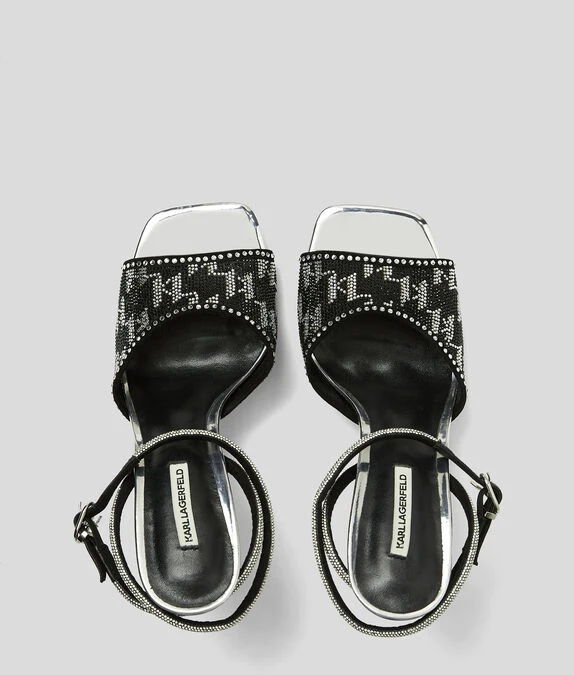 Diese Sandalen runden einen schicken, von Kopf bis Fuß abgestimmten Look ab. Die Kombination aus KL Monogram-Jacquard entlang des Zehenriemens und einem Metallic-Stiletto-Absatz ergibt einen aufsehenerregenden Style.