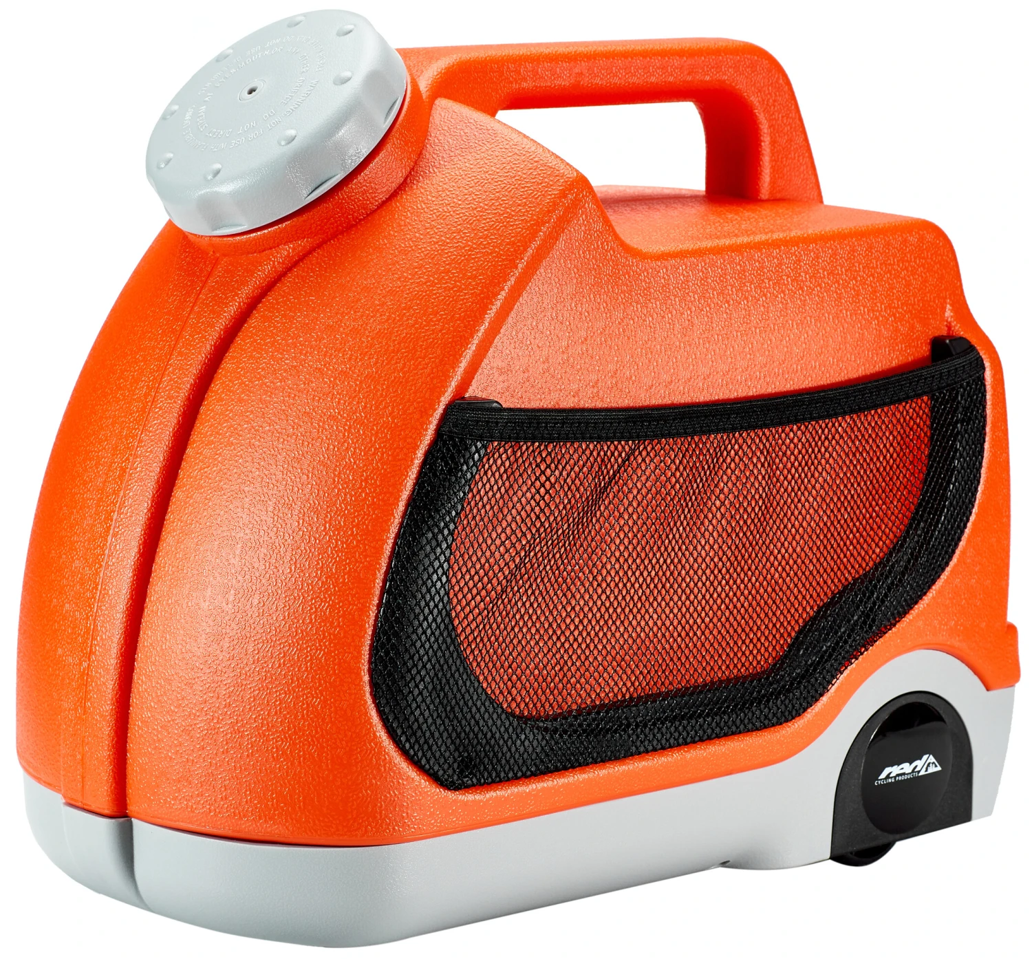 Der mobile Druckreiniger von Red Cycling Products rückt auch dem schlimmsten Schmutz zu Leibe. Ob fürs Fahrrad oder Camping, der RCP Mobile Druckreiniger kann überall verwendet werden und benötigt keinen festen Wasseranschluss. Mit seinem 15 Liter fassenden Wassertank kann er bequem überall hin mitgenommen werden. Der Reiniger kann über den Zigarettenanzünder eines Autos oder eine normale Steckdose betrieben werden. Mit dem verstellbaren Sprühstrahl wird garantiert alles gründlich gereinigt, wobei der Druck schonend genug ist, um nicht die empfindlichen Teile am Rad, wie zum Beispiel die Lager, zu beschädigen.