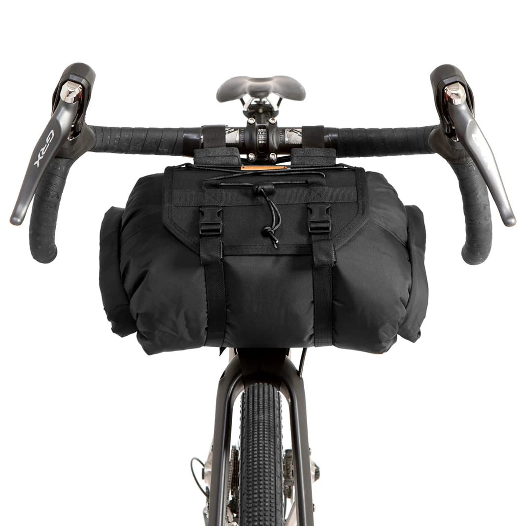Unsere Bar Bag ist eine ideale und problemlose Gepäcklösung für Bikepacking, Touren oder Pendeln auf Straßen-, Gravel- und Mountainbikes. Ohne Gepäckträger, Halterungen oder Werkzeug lässt sich die Tasche in Sekundenschnelle an jedem Fahrrad anbringen. Schaumstoffabstandshalter und federbelastete Nockenschlösser sorgen für eine einfache und zuverlässige Befestigung am Lenker, während zwei untere Haltegurte die Gabelkrone umschließen und für zusätzliche Stabilität sorgen.