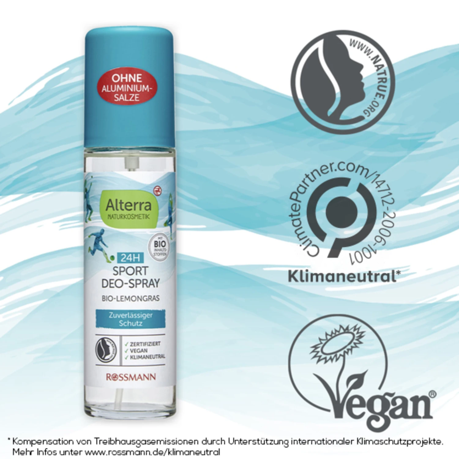 Das Alterra Deo-Spray Sport sorgt mit seinem belebendem Duft von Bio-Lemongras und Bio-Süßholzwurzel für ein frisches und gepflegtes Hautgefühl.