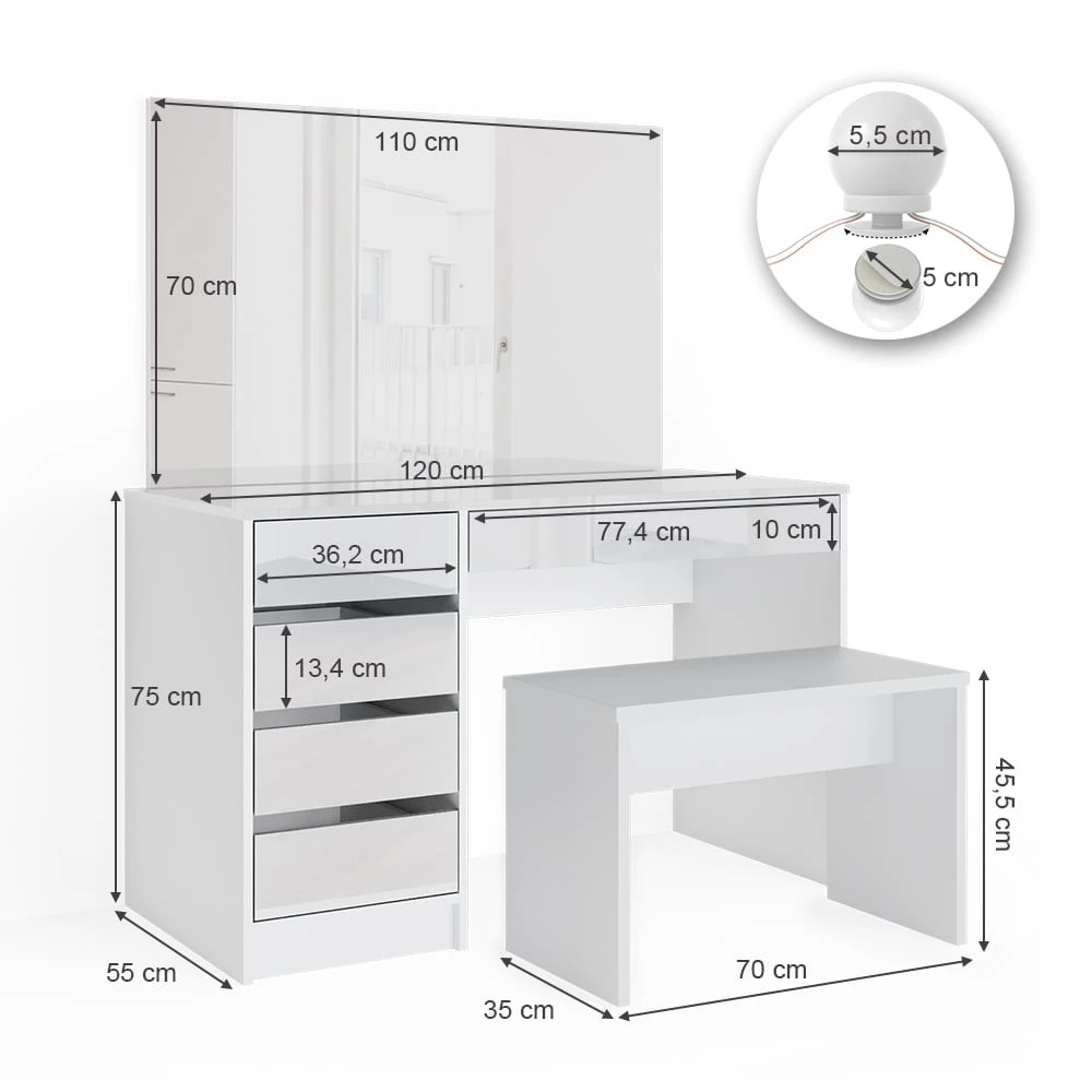 Die gradlinige Optik macht den Schminktisch zu einem stilsicheren Möbelstück, das jeden Raum aufwertet. Hochwertige Verarbeitung, bis hin zum Hochglanzeffekt, runden das Gesamtkunstwerk ab.