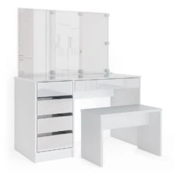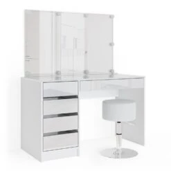 Vicco Schminktisch Sherry Weiß Mit LED-Beleuchtung Spiegel Hocker Frisiertisch